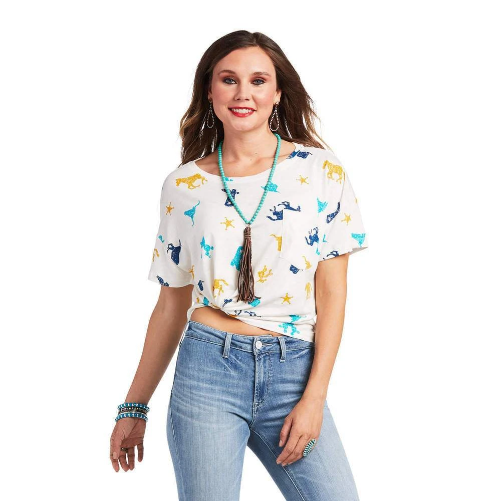Add a little fun to your wardrobe with this playful tee. Soft and comfy with a relaxed fit, it features classic Western shapes in of-the-moment colors.