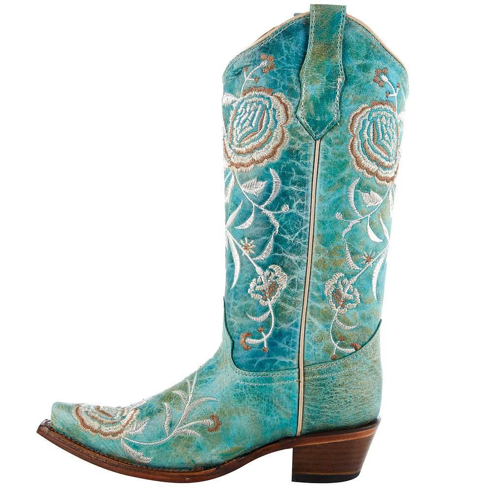 We love these turquoise floral leather boot!