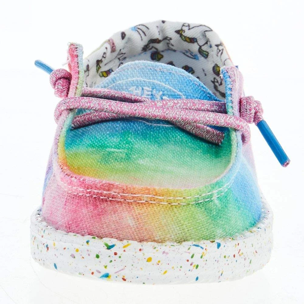 In materials chosen to reflect the imagination and individuality of today’s kids, constructed with a cotton-blend upper and finished off on an ultralight outsole and an easy-on system with elastic laces, to keep her going all day!