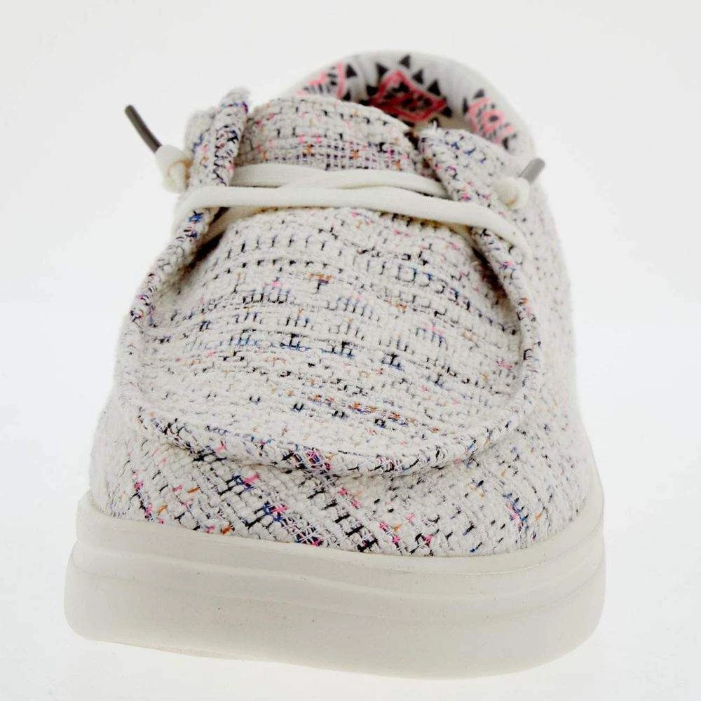 Our iconic low-top moc with a little extra height and a little extra cushion. The Wendy Rise collection is still super lightweight and comfortable. Built with a soft, linen-blend upper, an ultralight outsole and designed with our easy-on system featuring no-tie elastic laces. Finished off with contrasting textures and hand-stitched details at the heel.