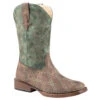 -Anderson Bean-Kids Sizing-Chocolate Filet fish print vamp-Green Sinsation top-Roper Heel-Leather sole-K1824 Want to keep your young cowboy fresh in some new kicks? These new AB Kids boots are the perfect choice! Anderson Bean Kids Sizing chocolate Filet fish print vamp with green Sinsation top. Roper Heel and leather sole.