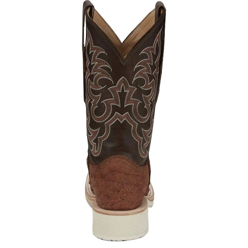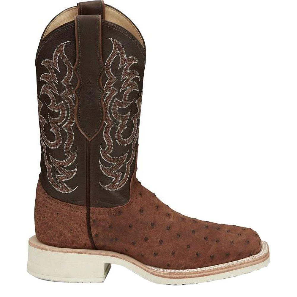 Crafted from full quill ostrich and cowhide, the Dakota in wild brandy steps into the spotlight and instantly commands the attention it deserves. Built to perform both in and out of the saddle, this boot features oil and slip-resisting crepe outsole that is lighter than rubber outsole but still strong. On the inside there is the J-Flex Comfort System insole that will keep you comfortable. This boot is made in the USA with global parts. AQ8631
