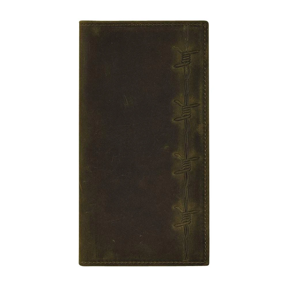 Men’s Justin barbed wire rodeo wallet! Bi-fold leather that holds credit cards and ID. Fits most pockets.