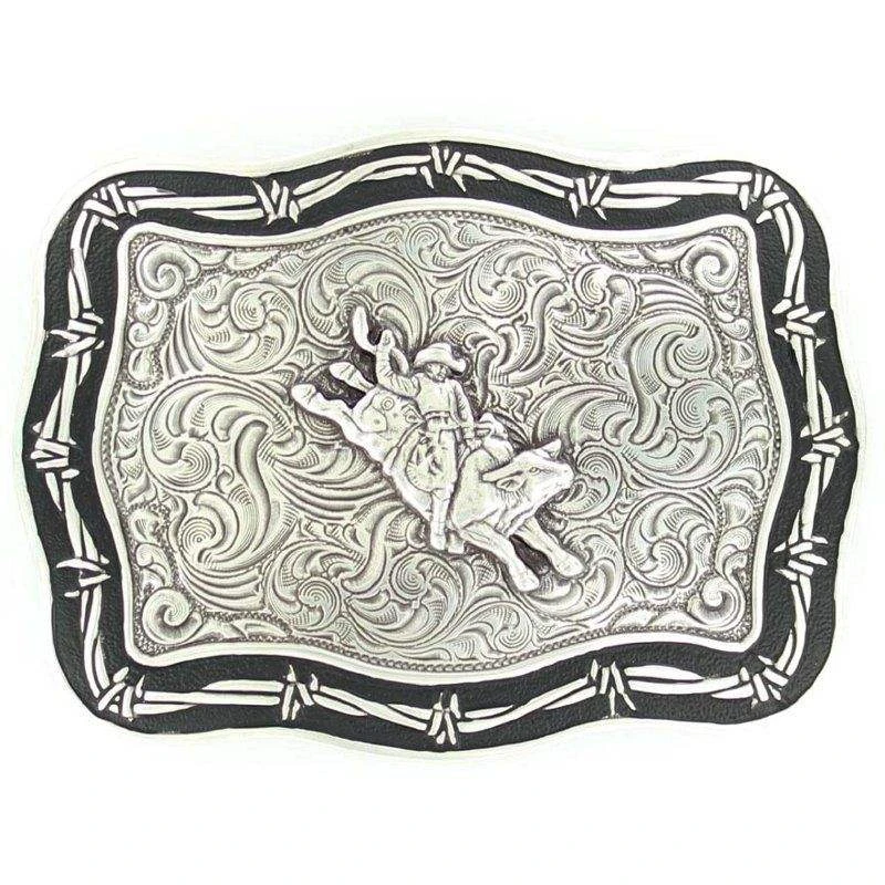 This belt buckle by M&F Western Products is made to make you look sharp! This is a very nice belt buckle that fits most size belts and has your traditional belt loop fastener that is easy to slide on and off. This buckle is made to shine up your outfit! Put this on your favorite leather belt and you will be ready to make your best impression. This M&F buckle is made with silver and is with detailed engraving that makes this buckle unique.