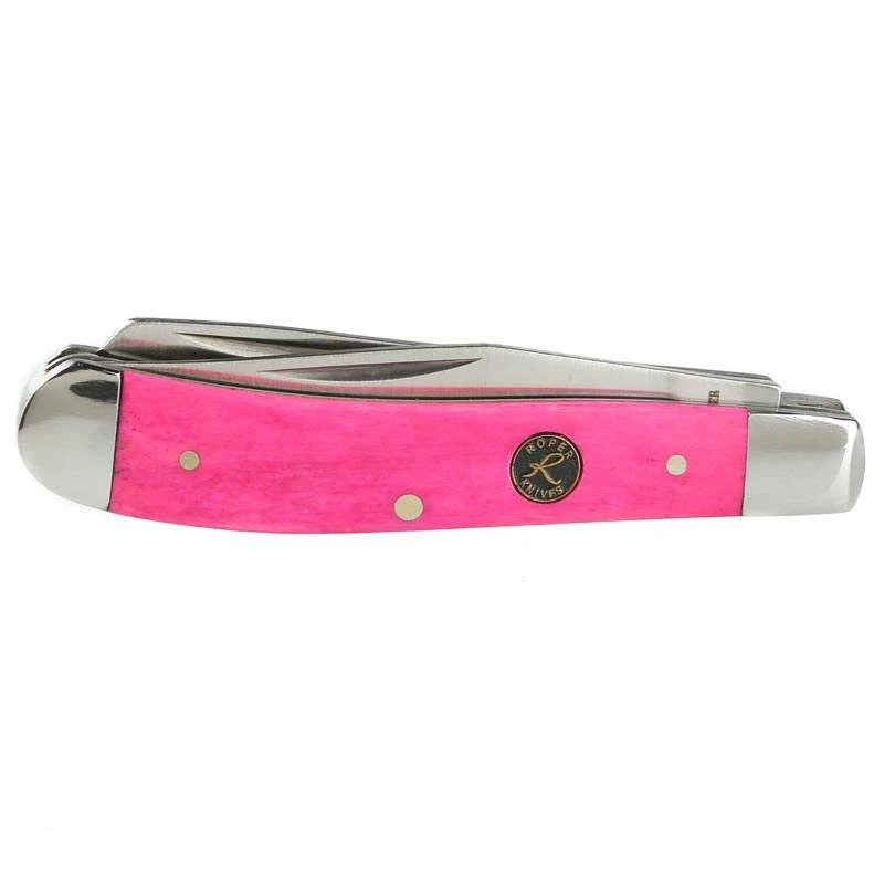 The Roper Knives Pink Sky Peanut Knife features a smooth vibrant pink bone handle and a satin finished stainless steel blade.
