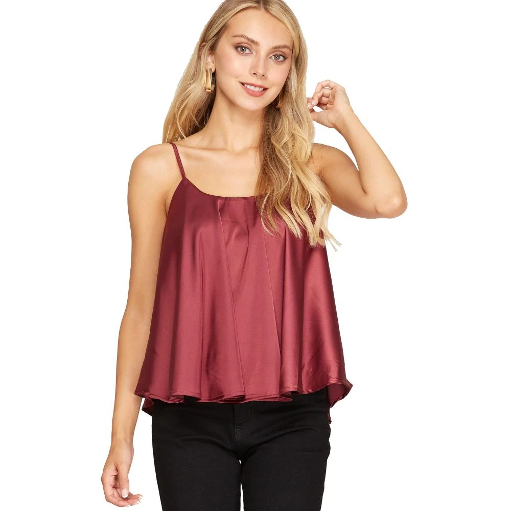 A beautiful satin cami, perfect to pair with a jacket or sweater!