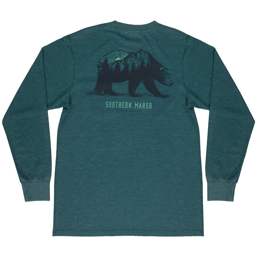 Representing the beauty found in all types of nature, from cascading mountains to roaming bears, this tee is the perfect addition to any nature-lover’s wardrobe! Made with our specially treated fabric, it’s been heavy-garment washed for softness and comfort. The material is meant to fade over time to make it look like it has been your favorite tee, season after season. The breathable, lightweight SEAWASHâ„¢ fabric makes it airy and comfortable, and it’s finished with a front pocket featuring our Southern Marsh mallard silhouette logo.